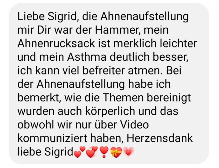 Grundsätzlich halte ich es für sinnvoll, seine eigene Familie zu harmonisieren. Besonders empfehlenswert ist es bei Menschen, die ein tief verwurzeltes Gefühl haben, das sich lebensblockierend auswirkt, für das keine plausible, psychologische Erklärung gefunden werden konnte.